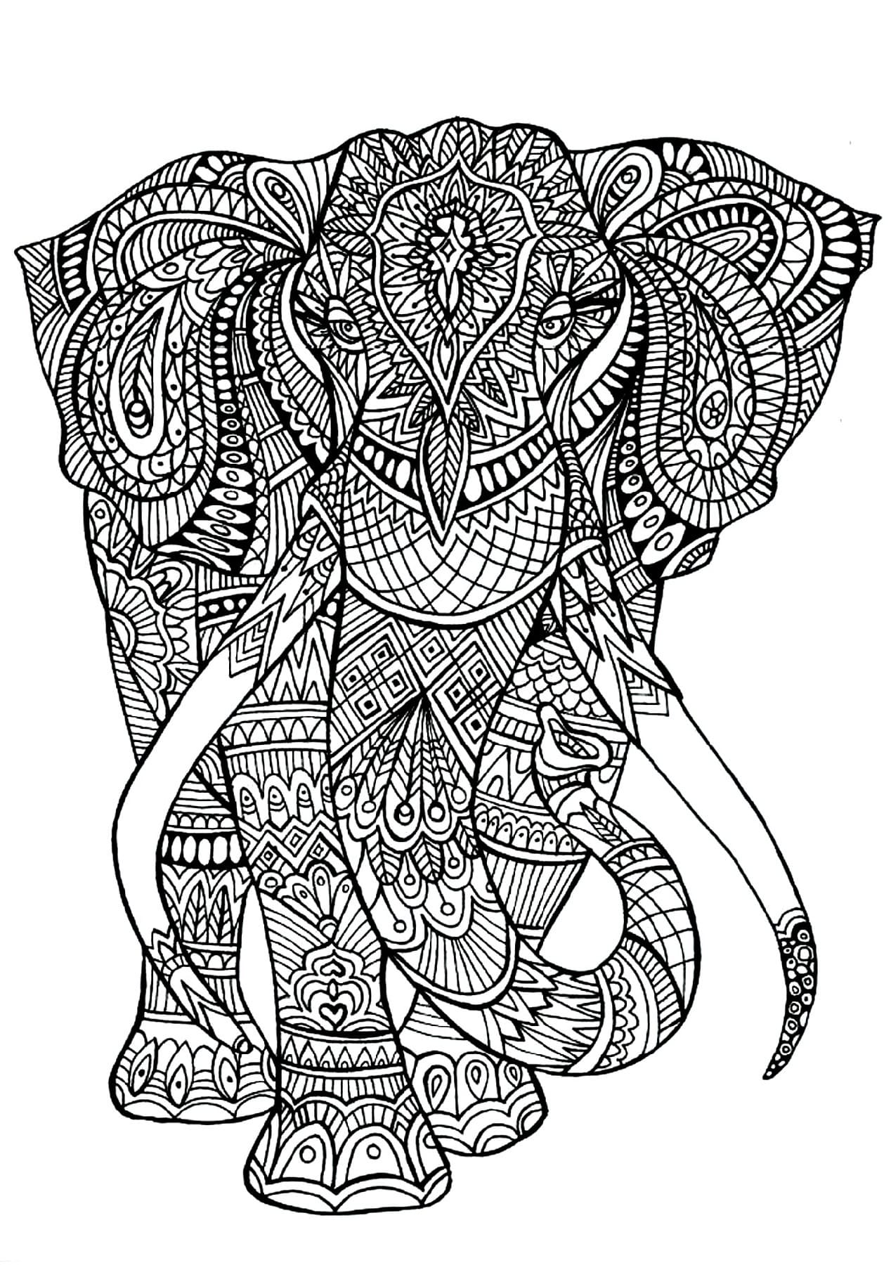 Awesome elephant mandala coloring pages design.